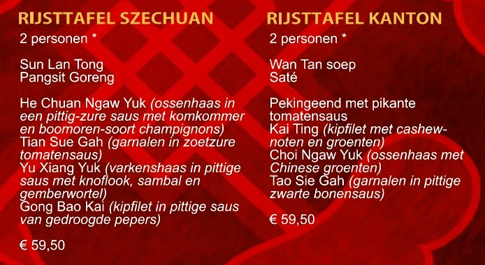 RIJSTTAFEL SZECHUAN EN KANTON